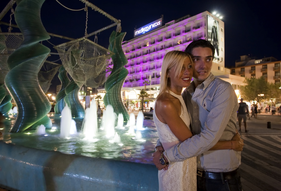 Piazza con fontana in notturna - Misano Adriatico PH. Paritani