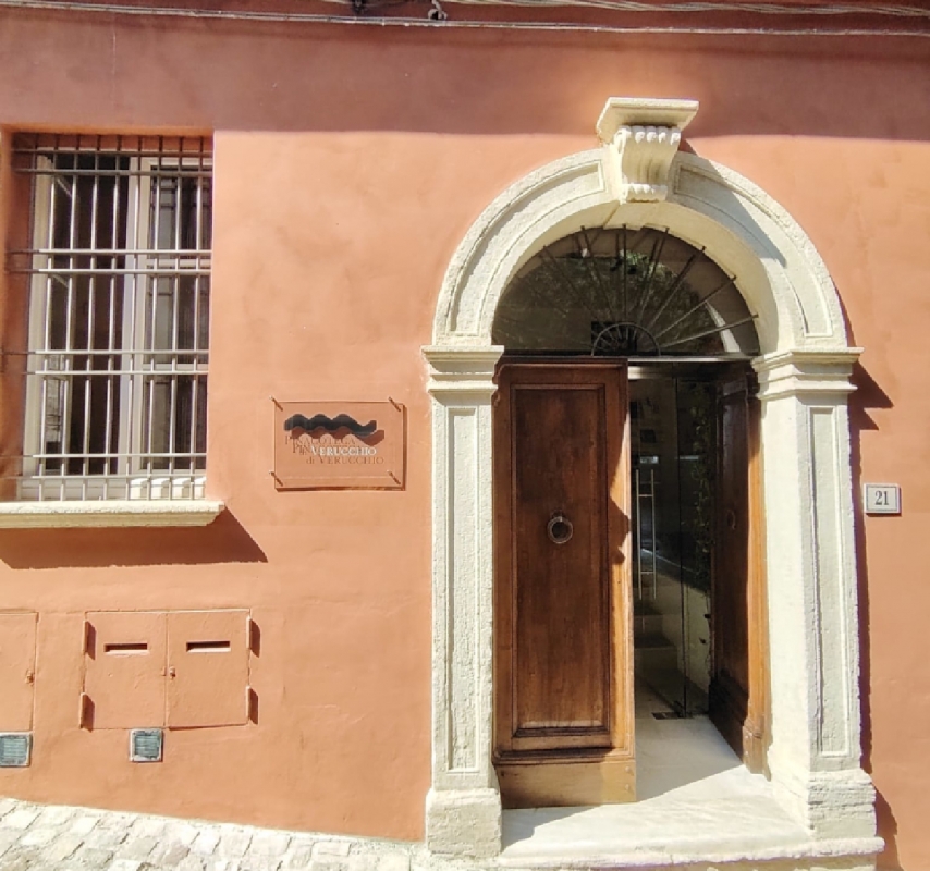 La Pinacoteca ha sede in un palazzo ottocentesco nel cuore del borgo di Verucchio, dove sono state restaurate le sale del piano nobile. Gli ambienti, originariamente residenza del medico condotto del paese e poi della scrittrice Maria Pascucci, ospitano oggi il percorso espositivo: due salette affrescate – di cui una dedicata alle mostre temporanee – e un ampio salone con travi a vista accolgono le opere più rappresentative della collezione. Le restanti sono conservate in un deposito allestito all’interno della struttura, con l’obiettivo di favorire futuri rinnovamenti dell’allestimento e progetti di valorizzazione.